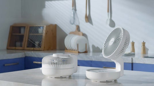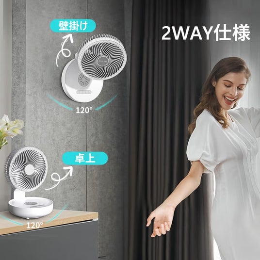 FDLAI扇風機は、スタンドでデスクに置いて使うのはもちろん、付属のパーツで壁に掛けることも可能な2WAY設計。リビングの棚やキッチンの壁、ベッドサイドなど、場所を選ばずスッキリ設置。