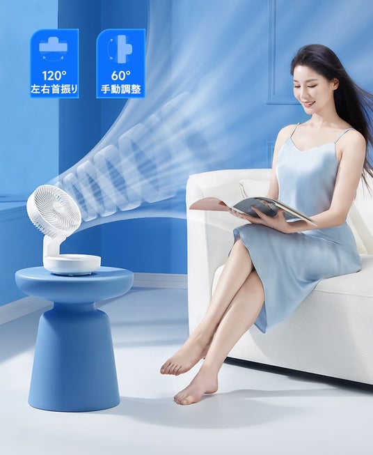 広範囲にやさしい風を送り届け、空気を効率よく循環。暑さがこもりがちな部屋もムラなく涼しく保ちます。