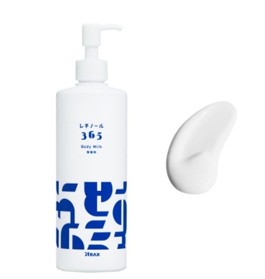 近年注目を集めている成分「レチノール」を配合した、毎日使えるボディミルクです。レチノールという成分名を聞いたことがあっても試したことがない方にも気軽に使用していただける、手軽なレチノール製品を目指して開発しました。成分のこだわりはもちろん、塗りやすい伸びの良さや塗った後のべたつかない使用感にも配慮して、「毎日=365日」使いたくなる、使い心地を追求しています。