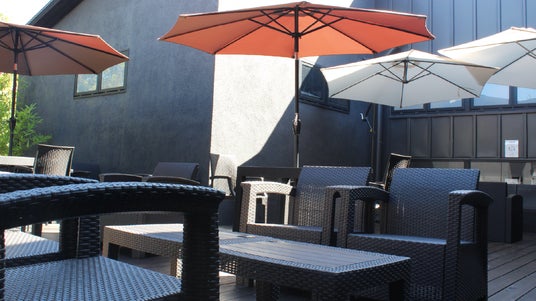 広々としたロビーとウッドデッキエリアでカフェタイムをお楽しみいただけます。