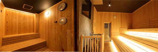 最大33名で利用できる大型のサウナはセルフロウリュやウィスキングが可能。