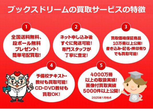 株式会社ブックスドリーム(本社:大阪府大阪市、代表取締役:井上聖也)は、参考書・専門書・医学書・大学教科書・予備校テキスト・教材を専門に全国から宅配買取を行い、ネット通販で販売しており、2025年で創業16年目を迎えました。