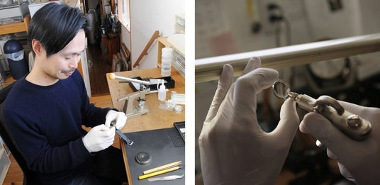 金沢の時計工房のアートディレクター・牛島孝さんに作っていただいた5つの時計。金沢の伝統文化と日本古来の技法を合わせたこの時計は、日本画家としても活躍する牛島さんならではの逸品です。文字盤は、天然の鉱物を砕いて作った「岩絵具」で着彩。岩絵具は日本画の画材として使われており、その起源は飛鳥時代にまで遡ると言われています。