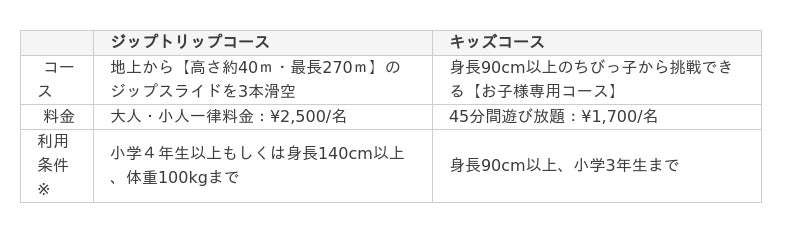 2020年のオープン以来、10万人を超える来場者が訪れ、子どもから大人まで森の中でワクワクする冒険体験を提供してきた当施設。目玉アクティビティの“ジップトリップコース”は、270mを空中滑走する大迫力のジップライン。他にも、森の高低差や地形を活かしたアクティビティの「アドベンチャーコース」、難易度を抑えた「キャノピーコース」、小さなお子さま向けの「キッズコース」、そしてマウンテンバイクが楽しめる「トレイルアドベンチャー」など、ここにしかない体験が満載です。