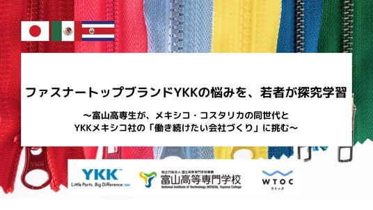 株式会社WTOC(所在地:東京都渋谷区、代表取締役:堂原有美)は、この度、富山高等専門学校 国際ビジネス学科(所在地:富山県富山市、校長:國枝 佳明)とYKK株式会社(本社所在地:東京都千代田区、代表取締役社長:松嶋 耕一、以下YKK) 黒部事業所、YKKのグループ会社であるYKK Mexicana S.A. de C.V.(以下YKKメキシコ社)と連携し、企業が直面するリアルな課題解決をテーマにした国境を越えた探究学習プログラムを開始します。
