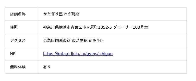 ▶︎https://katagirijuku.jp/gyms/ichigao