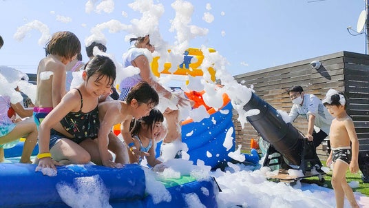 毎年大人気の水遊びエリアでは、「泡バズーカ」や「シャボン玉タイム」も行います。