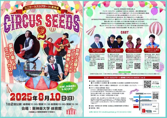『CIRCUS SEEDS vol.2』が2025年8月10日 (日)に東神楽大学 体育館(北海道 上川郡 東神楽町 19号南5)にて開催されます。