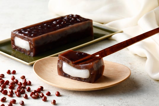 口どけの良い大納言羊羹に、もっちり柔らかい求肥を合わせました。