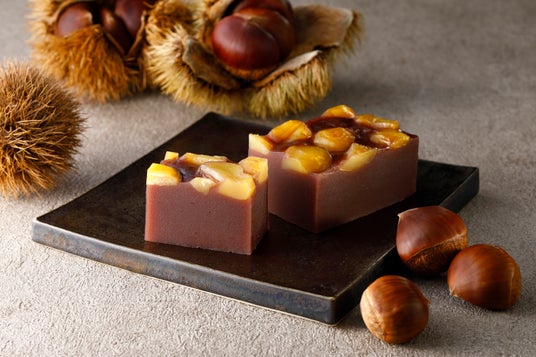 もっちり柔らかい食感のむし羊羹に、栗をたっぷり加えました。