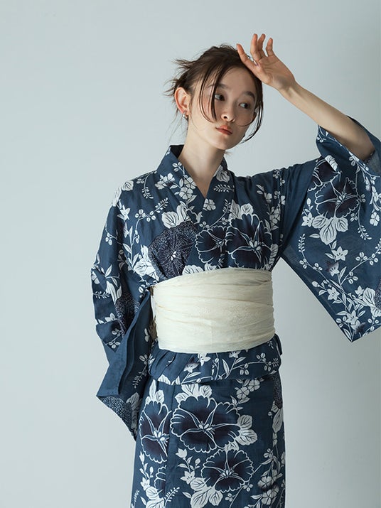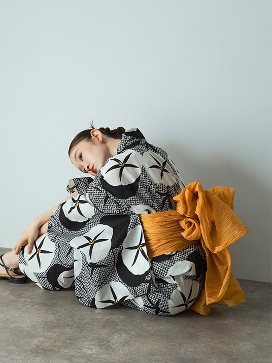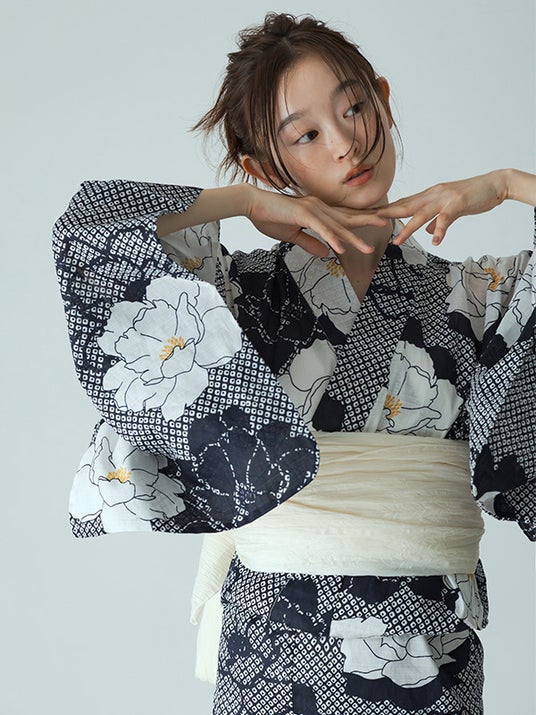 浴衣には、さらりとした肌ざわりと通気性に優れた「変織紅梅」生地を使用。暑い日でもべたつきにくく、涼やかで心地よい着心地を実現しています。長時間着ていても快適なので、夏のイベントにもぴったりです。