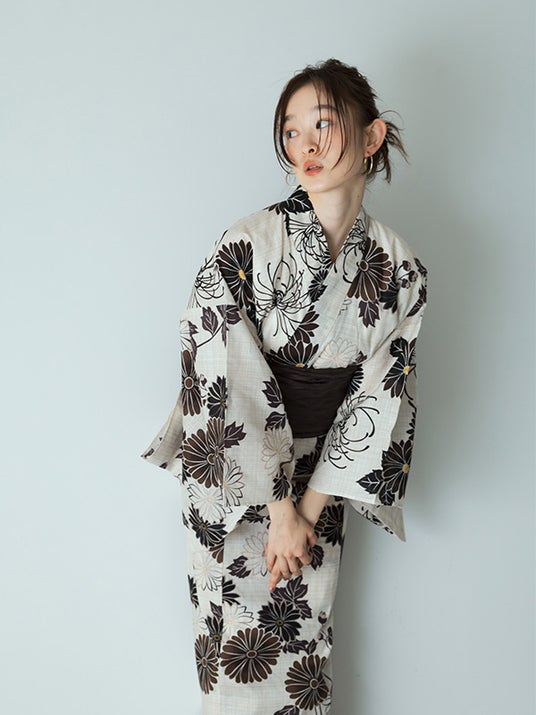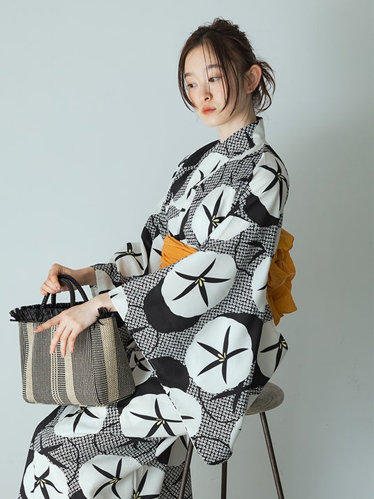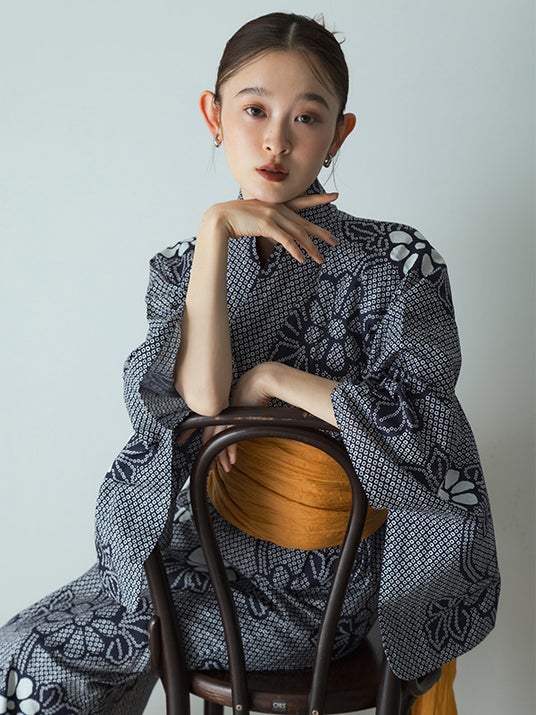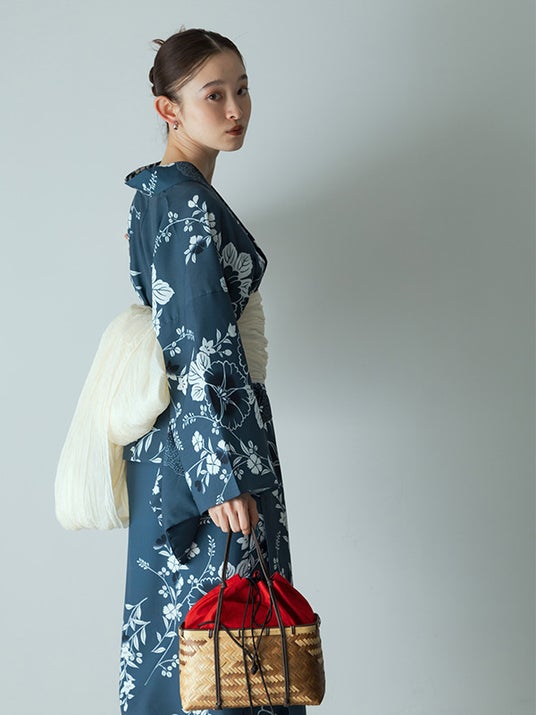洋服感覚でさっと着られるデザインながら、見た目は本格的な浴衣スタイルを楽しめる一着です。