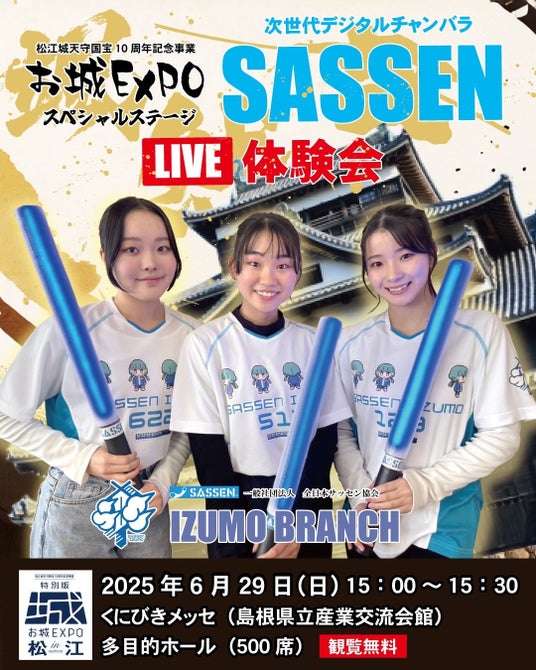 SASSEN出雲支部は、6月29日(日)15:00よりくにびきメッセ 多目的ホールのステージに登場し、「SASSEN LIVE体験会」を実施。