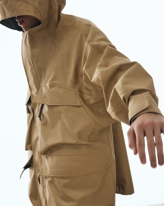 「D-VEC」GORE-TEX 3L SHELL PARKA 115,500円 GORE-TEX社のレインテストを合格した高い防水性を誇るフーデットパー環境配慮素材を用いた3層構造で、季節問わず活躍。4ポケットや調整可能なフード・裾付き。◎販売場所:D-VEC