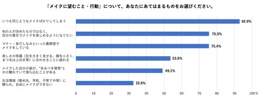 ・「いつも同じようなメイクばかりしてしまう(92.9%)」