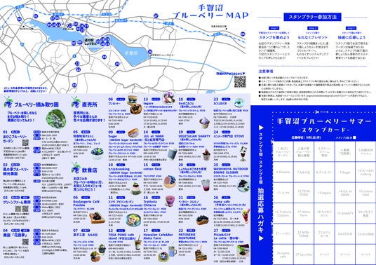 スタンプ対象:ブルーベリー園での摘み取り、直売所・飲食店での対象商品の購入、イベント参加