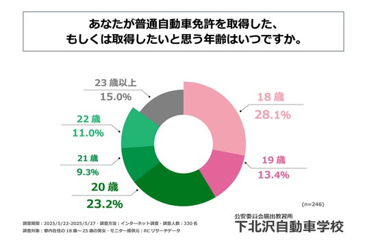昨今、若者のクルマ離れが叫ばれていますが、現代においても自動車免許を取得しようと考える若者は多数いるものと思います。昭和世代、平成世代であれば、普通自動車免許が取得可能になる18歳を迎えてすぐ、免許を取得する人が比較的多かったように思いますが、価値観の多様化が進む現在、どのような時期に免許を取得するかは、昔と比べて変化が起きていることも考えられます。そこで下北沢自動車学校株式会社では、都内在住の18歳~25歳の男女を対象に、「都内在住のZ世代の運転免許を取得する時期」に関する調査を実施しました。