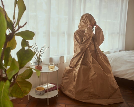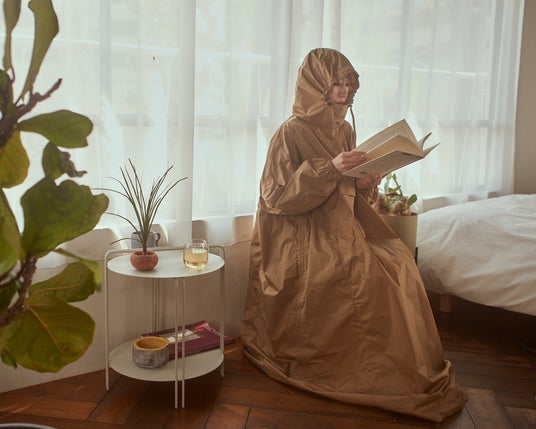 ファッションを楽しむかのように纏うよもぎ蒸しポンチョ。