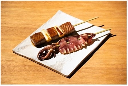 天然本まぐろの中とろを贅沢に使った、ジャンボ中とろねぎま串と国産スルメイカを使ったジャンボいか串。どちらも約27cmとボリュームたっぷり。