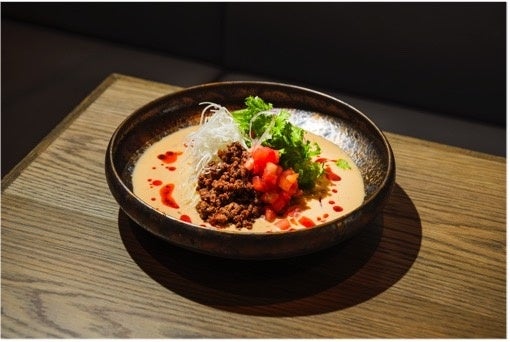 食欲をそそる美しいビジュアルとバランスのとれた程よい辛味が魅力の、夏に食べたいパンチのある一杯です。野菜の食感や肉の旨みが喉越しのよい細麺と抜群に絡み合い、コクのある味わいの胡麻スープは、やみつきになること必至です。