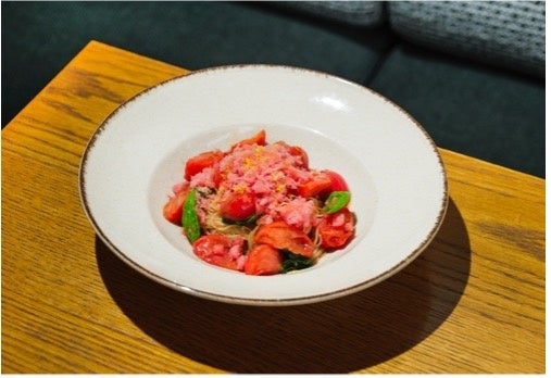 糖度が高く旨みが豊かな徳島県産フルーツトマトをたっぷり使用した、清涼感あふれる冷製パスタ。レモンとトマトで作ったグラニテをかけることで、爽やかな酸味と冷たさをプラス。