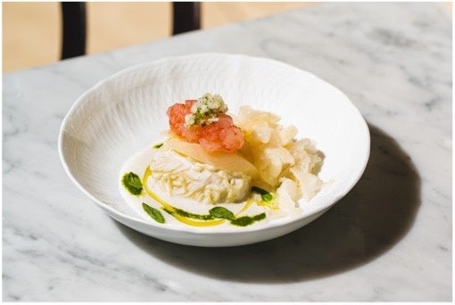 暑い夏に特別な涼を感じる、期間限定の冷製パスタ。細麺のカッペリーニに、プリプリな甘海老のタルタルとフレッシュな白桃のグラニータをふんわり重ねました。見た目にも美しく、香り高い逸品をどうぞ。