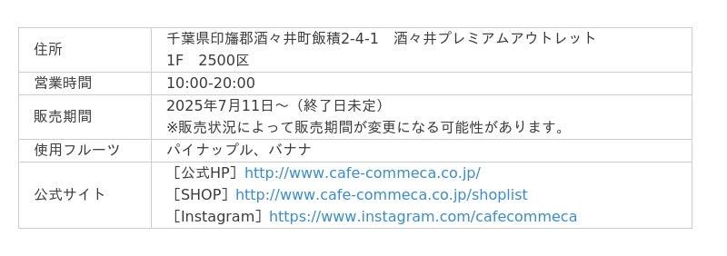 ※6月12日時点。プレスリリース下部に店舗住所、営業時間など詳細を掲載しています。