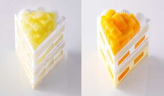 (左)『新エクストラスーパーメロンショートケーキ』¥4,320 (右)『新エクストラスーパーマンゴーショートケーキ』¥4,860