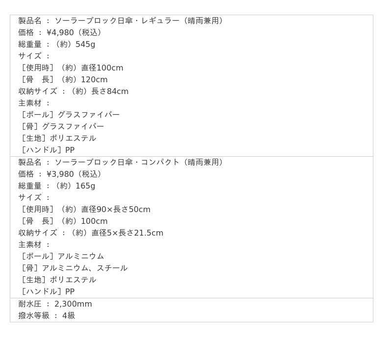 日射しと熱を強力に遮る晴雨兼用の日傘「ソーラーブロック日傘(晴雨兼用)」2種を、アウトドアや旅行、通勤通学など様々なシーンでぜひともご活用ください。