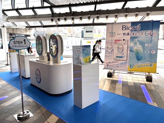 4月下旬からゴールディンウィークに掛けては、「快適をまとってGO!」をテーマに、体験型イベントを都内で展開し、約1,200名が体験。実際に商品を使用したお客さまからは、「ふいたところがすぐにさらさらになって驚いた」「みずみずしいシートでふき取った後、すぐにさらさらに変化するのが良い」など、『ビオレZeroシート』の快適な使用感に驚きと感動の声があがりました。