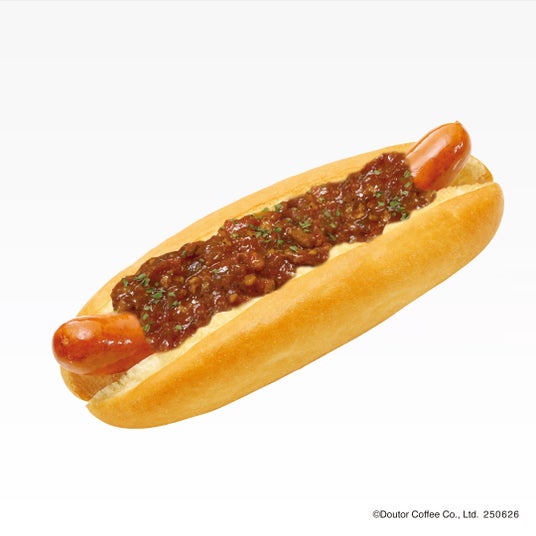 歯切れのよいさっくりとしたパンにジャーマンソーセージをはさみ、スパイシーなチリミートをかけました。辛さの中に挽き肉の食感とうまみが感じられる、夏に食べたい期間限定のドックメニューです。