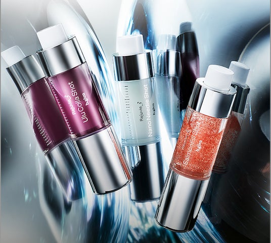 3 ステップの美肌再起動システムは、クリニックの施術から着想を得ています。単なる3種の美容液の組み合わせではなく、肌科学に基づいてそれぞれの役割が連携するように設計されています。そこに浸透技術QuSome(R)*3(キューソーム)を掛け合わせることで、必要な成分をより深く届けることができる。