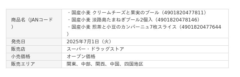 敷島製パン株式会社(Pasco)は「ArtisanSelection」の新商品として、「国産小麦 クリームチーズと果実のブール」「国産小麦 淡路島たまねぎブール2個入」と、「国産小麦 煎茶と小豆のカンパーニュ7枚スライス」を2025年7月1日(火)から関東、中部、関西、中国、四国地区にて発売します。