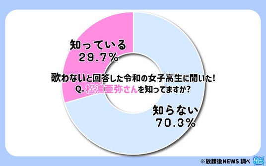 放課後NEWSでは、「松浦亜弥さんの曲を歌わない」と回答した全国の現役女子高生に、「松浦亜弥さんを知っていますか?」というアンケート調査も実施。