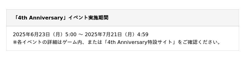 盛りだくさんでお届けしている「4th Anniversary」イベントをどうぞお楽しみください。