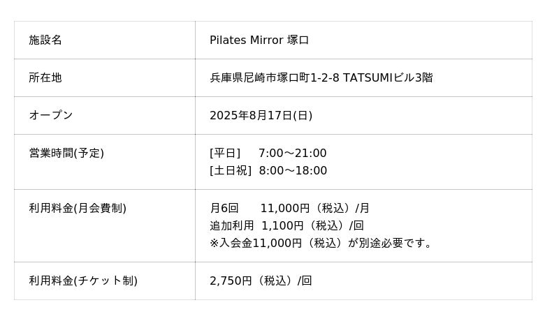 Pilates Mirror(ピラティスミラー)8月17日に兵庫県尼崎市塚口にオープン!