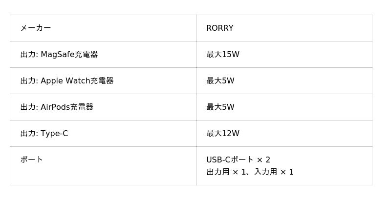 RORRY MagSafe対応4-in-1ワイヤレス充電スタンドの仕様
