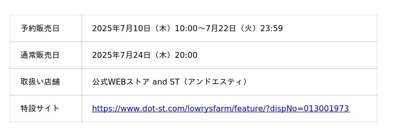 <公式WEBストア and ST(アンドエスティ)> https://www.dot-st.com/lowrysfarm/