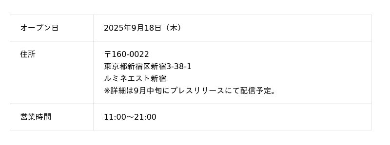 2025年9月18日(木)にルミネエスト新宿に“初”の単独店をオープン