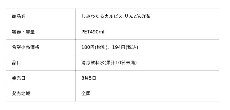 『しみわたるカルピス りんご&洋梨』8月5日発売