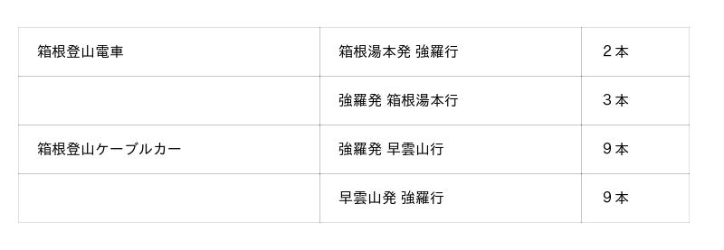 詳細の運行ダイヤは別紙1または、公式 HP『箱根ナビ』(https://www.hakonenavi.jp/groupnews/14573/)をご覧ください。