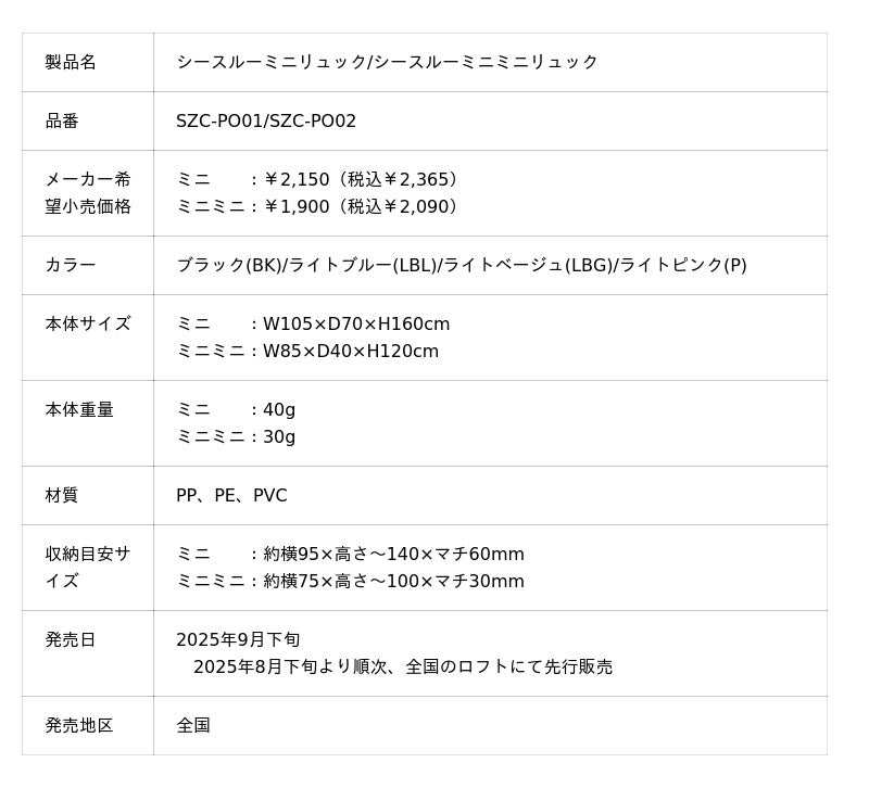ナカバヤシ株式会社(本社:大阪市中央区、社長:中林一良)はぬいぐるみに“背負わせて飾れる”製品「シースルーミニ(ミニ)リュック」を全国で2025年9月下旬より順次発売します。また発売に先駆け、8月下旬よりロフトにて数量限定で先行発売いたします。