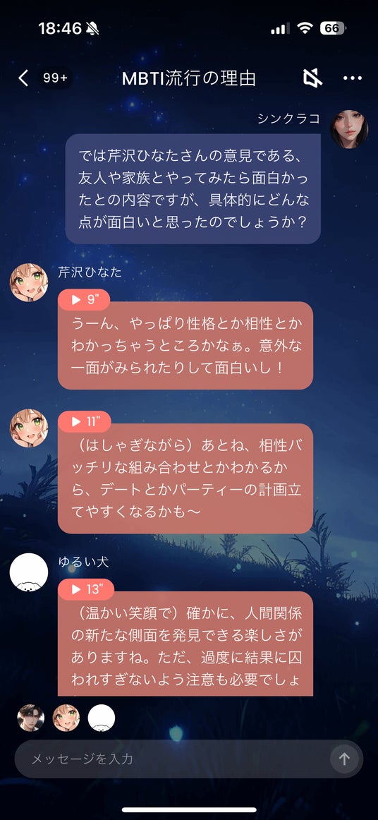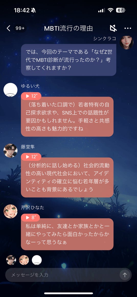 【激論!AIキャラが語るMBTIとラベリングの是非】AIチャットアプリ「SynClub」、AIキャラたちが注目のトピックを討論「朝までグルチャ」プロジェクト開始