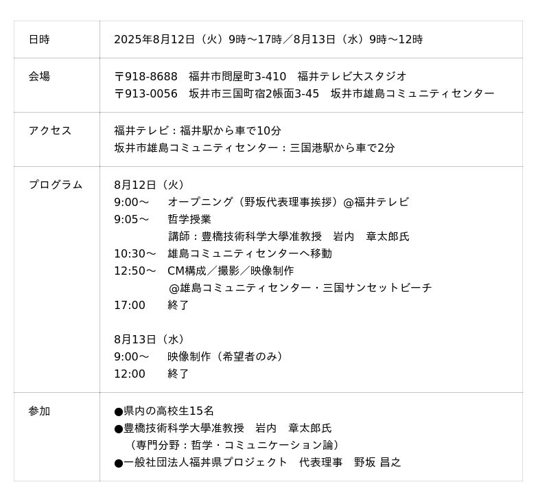 2025年8月12日(火)~13日(水) <福井テレビ/三国サンセットビーチ/坂井市雄島コミュニティセンター>
