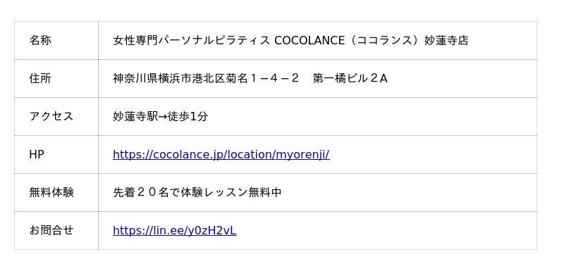 【妙蓮寺駅 徒歩1分】女性専門パーソナルピラティス COCOLANCE(ココランス)妙蓮寺店が2025年9月13日にオープン