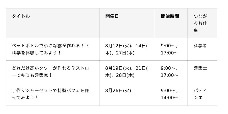 夏休み後半も子どもたちがワクワクするプログラムを多数開催予定!
