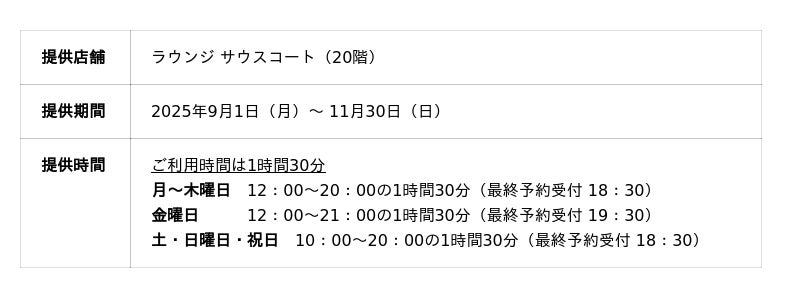 「小田急ホテルセンチュリーサザンタワー」(所在地:東京都渋谷区代々木2-2-1、総支配人:宮越 真理子)内、「ラウンジ サウスコート」(20階)では、秋の味覚のひとつ“栗”や秋に旬を迎える果実を生かした全4品をラインアップした「実りの秋フェア」を、2025年9月1日(月)から11月30日(日)まで開催いたします。