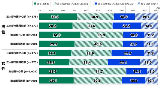 社会との関わりに関し「住むまちに誇れる伝統・文化・歴史がある」と認識する人は男女とも三大都市圏より地方の中心部、周辺部が高い数字となっています。このほか長期休暇で行きたい都道府県の1位は「北海道」が33都府県と圧倒的に多く、次いで「東京都」が14道県。同様に長期休暇でしたいことでは「勉強・自己研鑽」が26都道府県、「アルバイト」が13府県でトップ、開会中の大阪・関西万博に「ぜひ行きたい」は「どちらかといえば」も含め22都府県で60%を超えています。