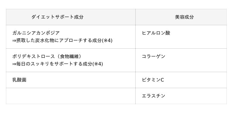 美容成分とダイエットサポート成分が複数配合されており、韓国での人気は勿論のこと、日本では発売後に楽天で売上1位(※3)に、Qoo10のランキングでも常にトップランクインするほどの人気ぶり。