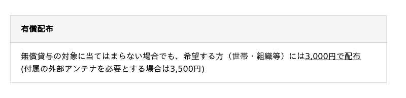 また、無償貸与の対象にならない方についても、希望者には抽選の上、有償で配布いたします。